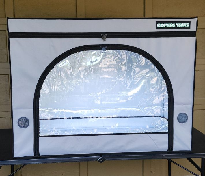 The NextGen Reptile Tent enclosures feature strong #10 zippers instead of velcro, 20-gauge clear windows, 1200D Canvas, and 600D vinyl interior. The new design also includes upgraded 3″ plastic vents in the front, and sewn-in electrical ports at the back for a cleaner look.