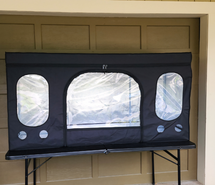 – 48″ x 6″ mesh top for UV lighting Note: Cover it if you need to hold in heat.